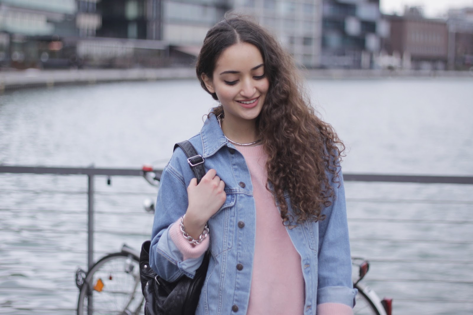 Round four for our We style it! project! For today’s topic denim, I chose my new boyfriend jacket and combined it with a cozy, oversized pullover and leggings – feeling so 90s! But in fact, the 90s are definitely having their fashion comeback this year with crop tops, grungy styles, loads of denim and high waisted pants. I really love how the fashion from the 90s is combined in a new, modern way these days and will definitely try out some other 90s styles!